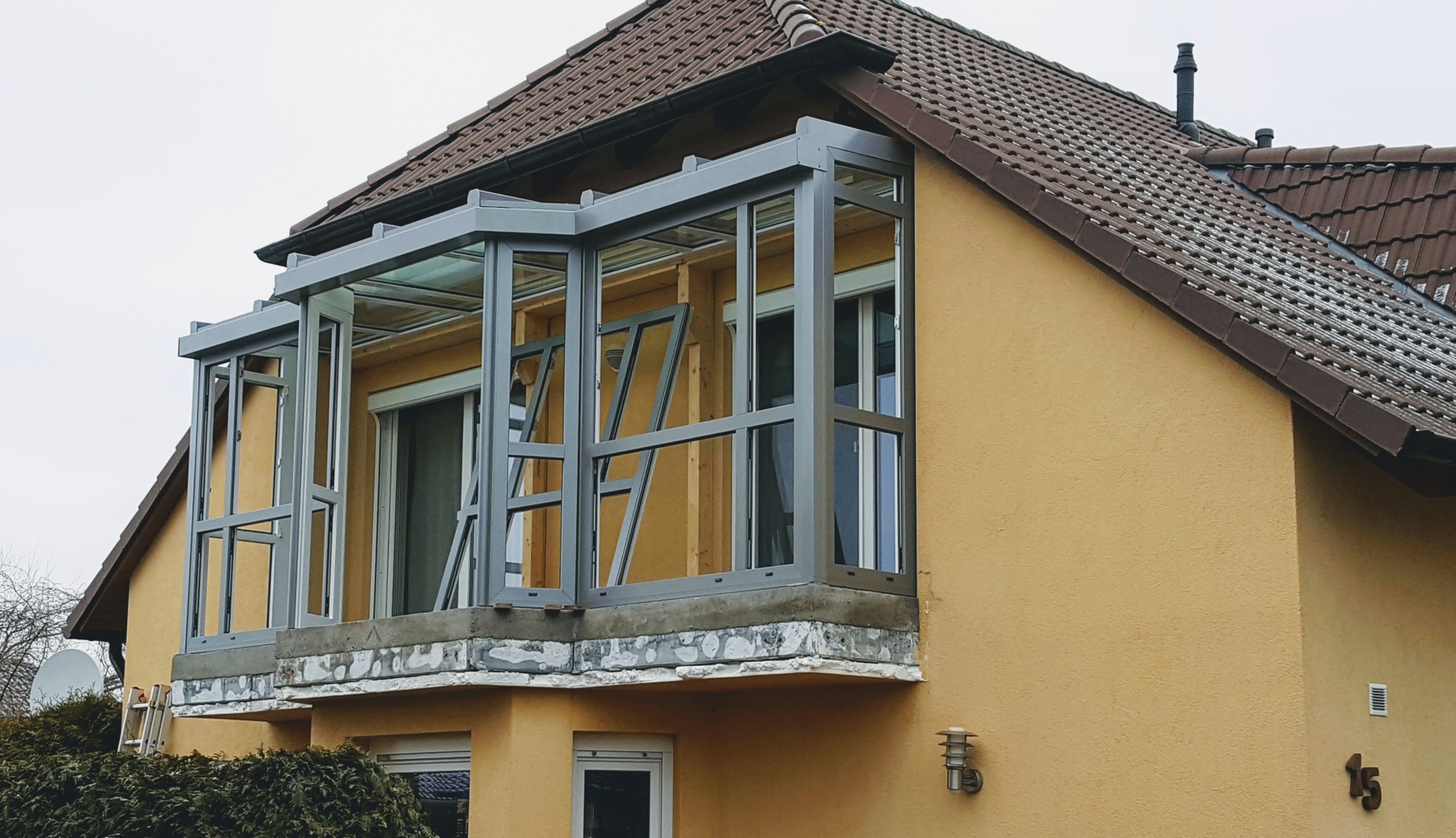 Regionaler Fachbetrieb, eigene Fertigung, 1.500 Referenzen. Auf Wunsch komplett mit Bauantrag, Statik, Fundament, Bodenplatte, Dämmung, Estrich, Fliesen